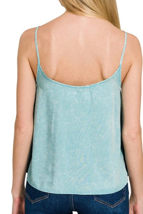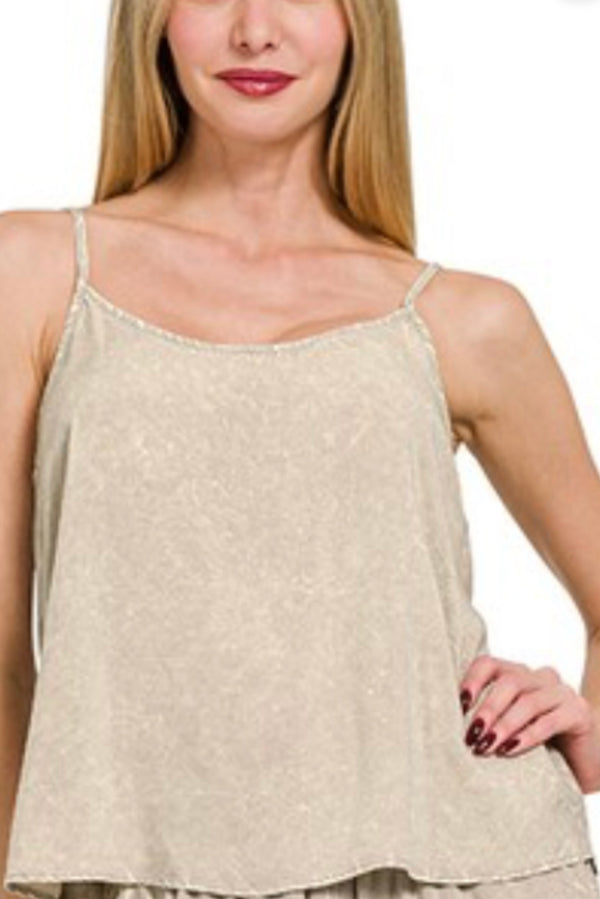 ACID WASHED WOVEN FLOWY CAMI WITH CRINKLE EFFECT