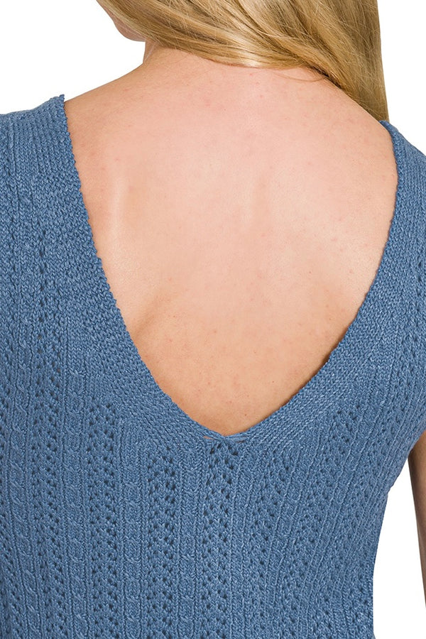 BUTTON DOWN SWEATER VEST WITH EYELET DETAIL