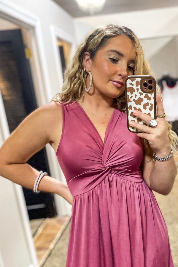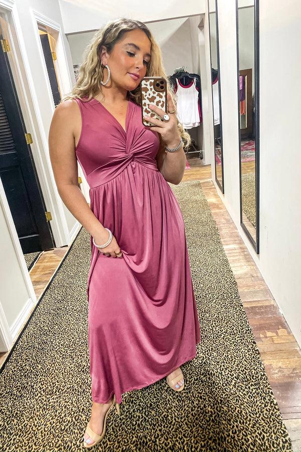 SLEEVELESS VNECK MAXI DRESS WITH TWIST KNOT DETAIL