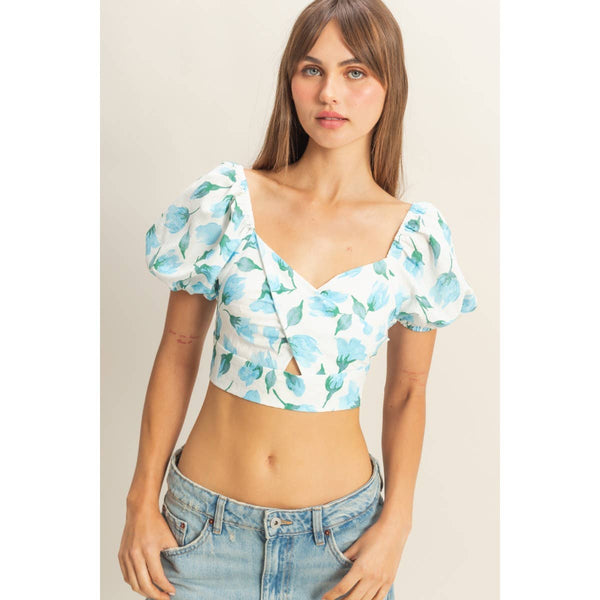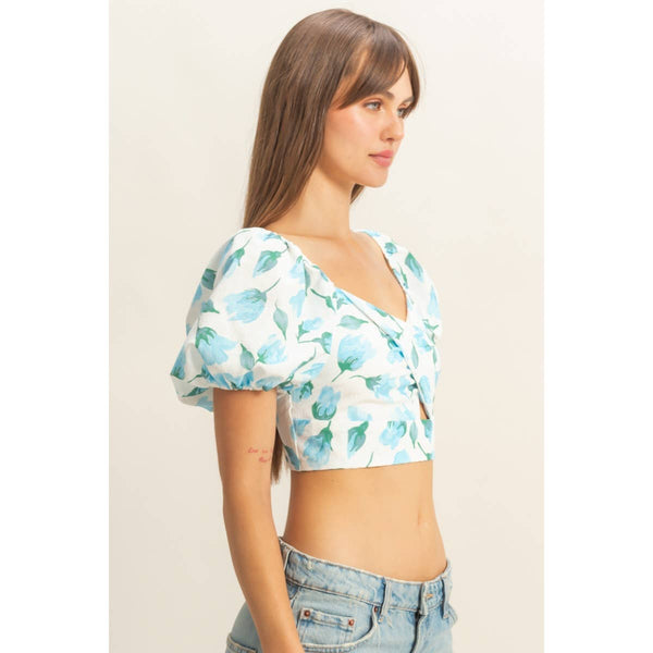 SHORT PUFF SLEEVE FLORAL PRINT SWEETHEART